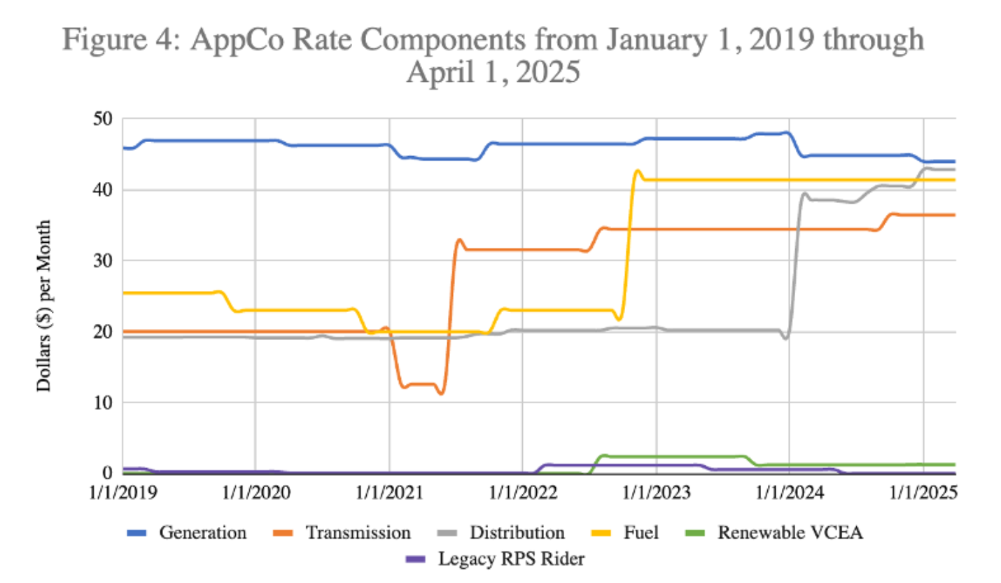 • Fuel costs – what the utility pays for natural gas – increased 62.5%, distribution costs increased 123.1%, and transmission costs increased 82.0% in ApCo’s service territory over the analysis period (See Figure 4)
