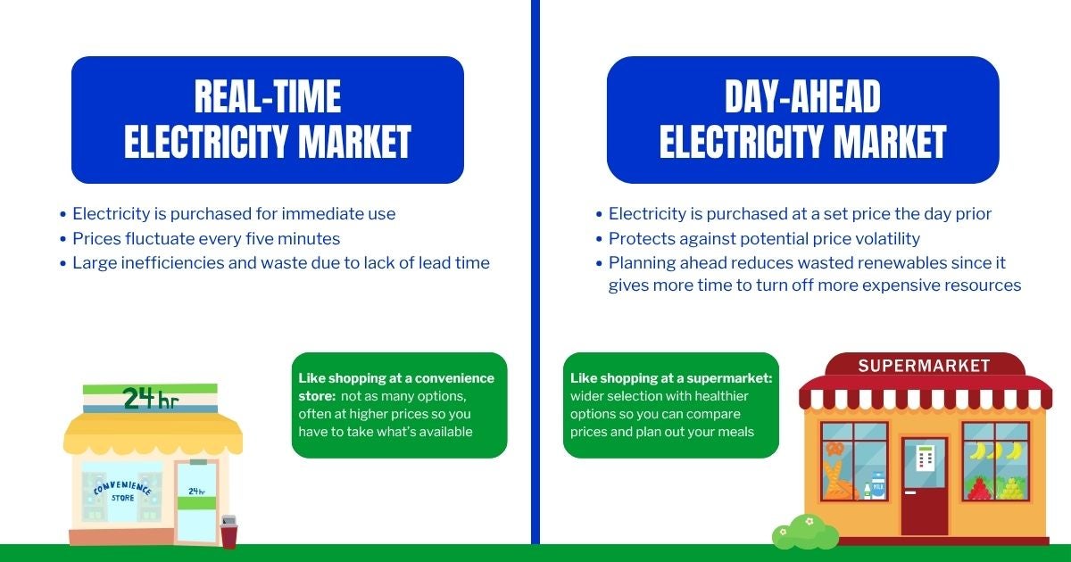 However, a real-time market like WEIM can only do so much — adding a day-ahead market, where utilities buy and sell power to serve forecasted needs a day in advance, would deliver even greater reliability and cost savings.