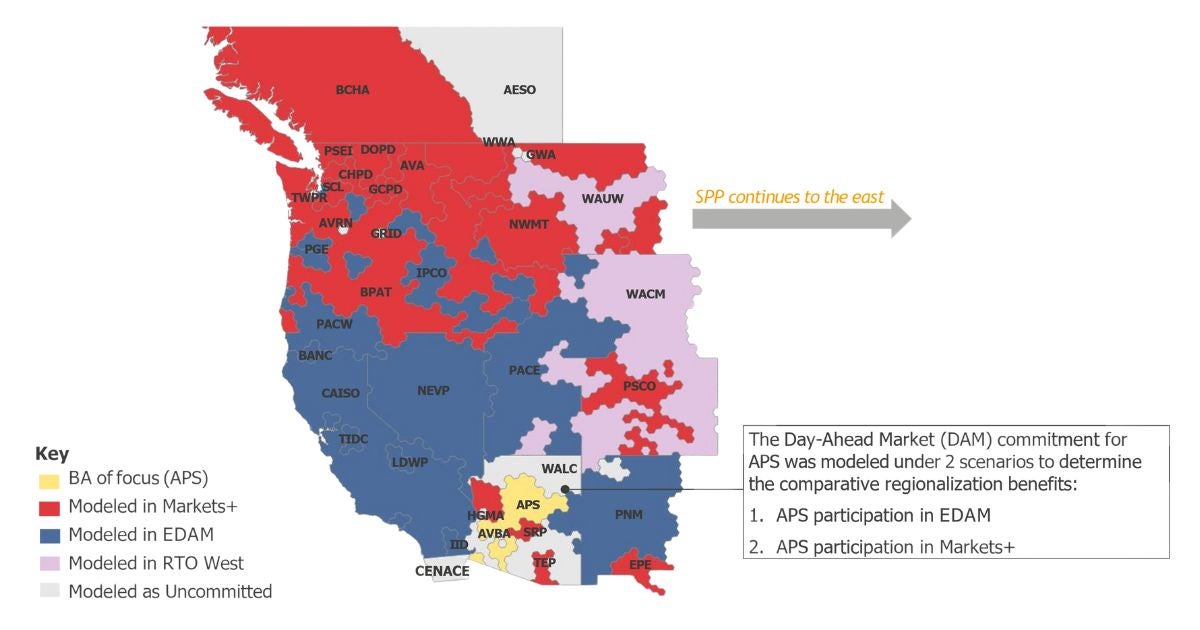 Since 2021, the California Independent System Operator (CAISO), which runs WEIM, has been in the process of establishing the Extended Day-Ahead Market (EDAM) to provide a day-ahead service that would benefit the West. While many utilities, including those estimated to serve nearly 50% of load in the region, have already signed onto join EDAM, several others have been reluctant to join or have actively pursued participation in an alternative market. Among those seeking an alternative include Arizona’s APS, TEP and SRP.