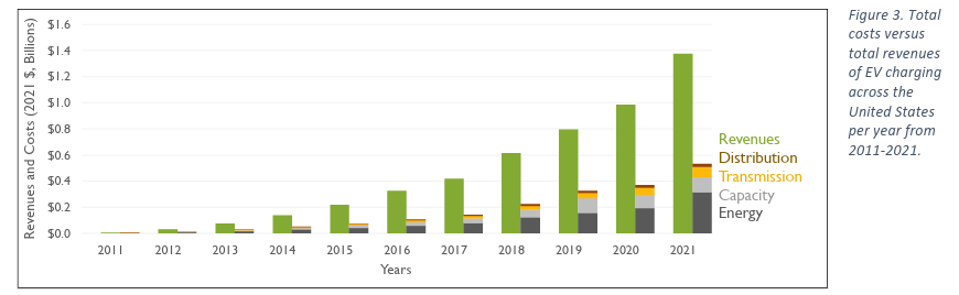 And this isn’t just theory. A study of EV use between 2011 and 2021 found that EV drivers generated $3.1 billion more in revenue than it cost utilities to serve them. Most of this “rate surplus” is returned to customers by mitigating the amount of utility rate increases. While the beneficial rate impacts were concentrated in those states with higher EV deployment, every state experienced some downward pressure due to EVs over the ten-year period.