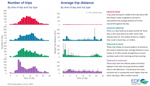 In order to understand the type of demand that these trips were responding to, we examined the distance of trip origins and destinations from Old Kent Road and were able to establish four distinct types of trips:
