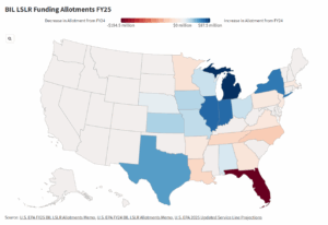 - Florida had the largest decrease – from being allotted $228 million to just $34 million in FY25. (EDF has pointed out the issue with Florida receiving a large, outsized proportion of the money two years in a row and this issue has finally been resolved.)
